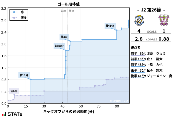 プレスとクリアで倒れ込んだジャーメインとGKに当たらないよう、冷静にゴールへ流し込み、追加点。
