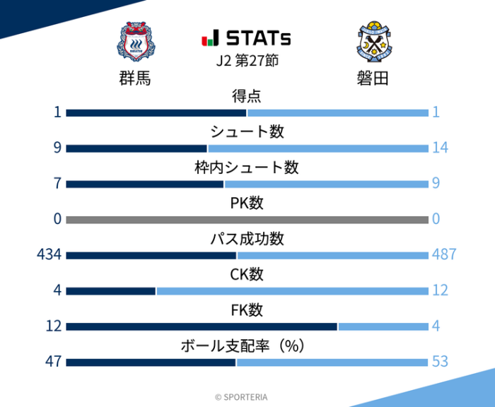前半は群馬のほうがボール支配率が高く、やりたいことをやれていた印象です。