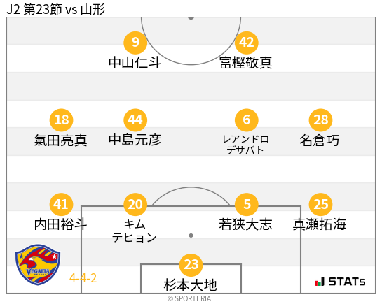 前回対戦では、ダブルボランチに高江と佐野のコンビを起用していたが、佐野の負傷により、ここ最近は宇野と安井のコンビを起用。宇野は佐野と同じように中盤を献身的に動き、ボールの回収を行い、安井はボールを散らしつつも、二列目からの飛び出しも武器としてゴールに迫る。