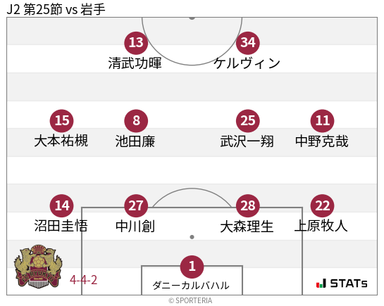 これまで同様、清武と池田を軸としたフォーメーションは変わらずか。前節に沼田が負傷後退したことから、スタメンは前節の途中からと同様に富所を起用するか、もしくは、田中または金井をSBで起用することも考えられる。