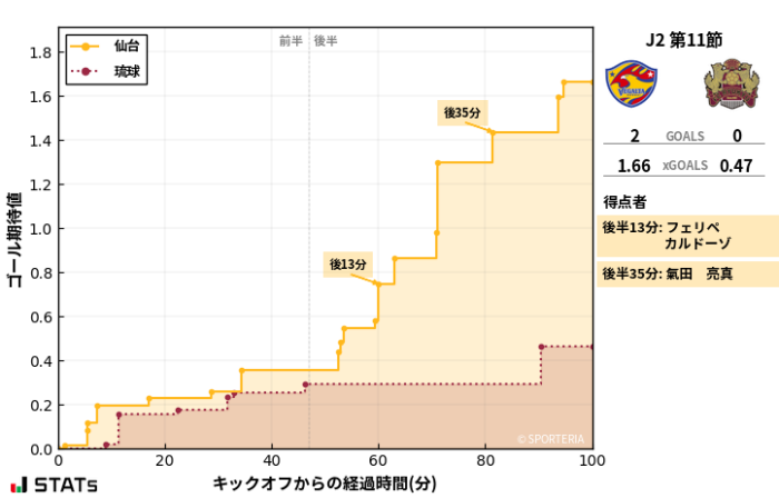 前回対決は、ボールを保持して丁寧に攻めようとする琉球に対し、仙台の前線からのプレスがうまくハマり、2得点できた試合展開だった。