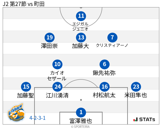 町田戦ではコーナーキックからの得点とクロスがそのままゴールに入るといった少々ラッキーな得点から勝利を収めている。また、エジガルジュニオは3試合連続得点中と好調を維持しており、3試合前の山形戦では鋭いミドルシュートからゴールを決めているため要注意である。