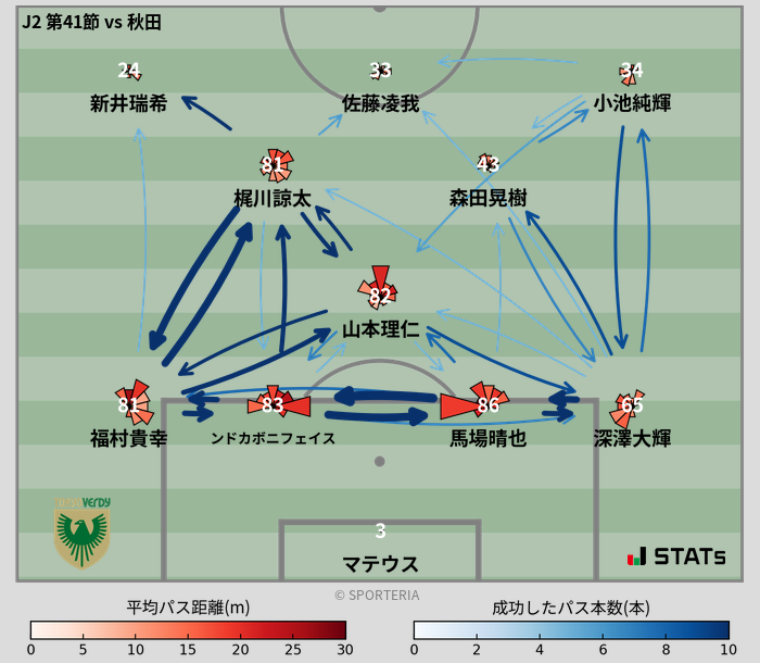 【参考2】昨年41節の対秋田戦のパスネットワーク図