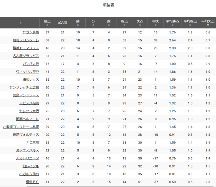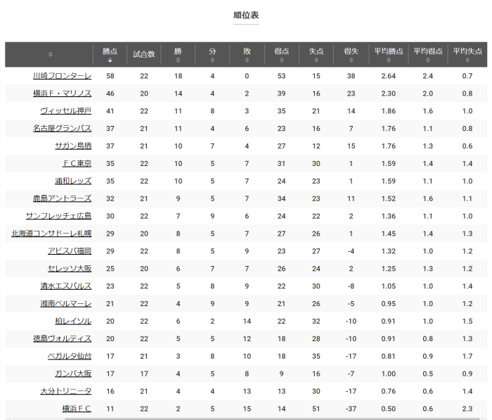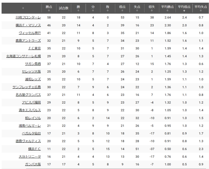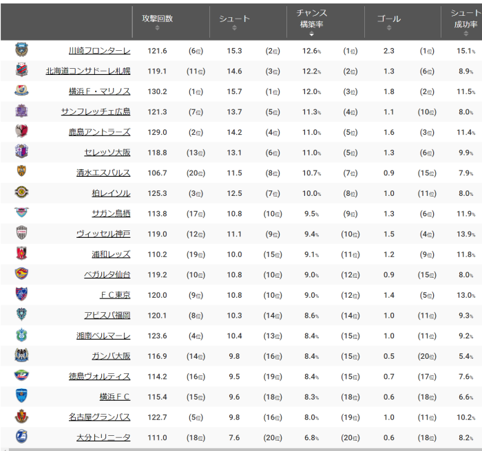 上位を見ると川崎・マリノスはやはり攻守のバランスが良いですね。