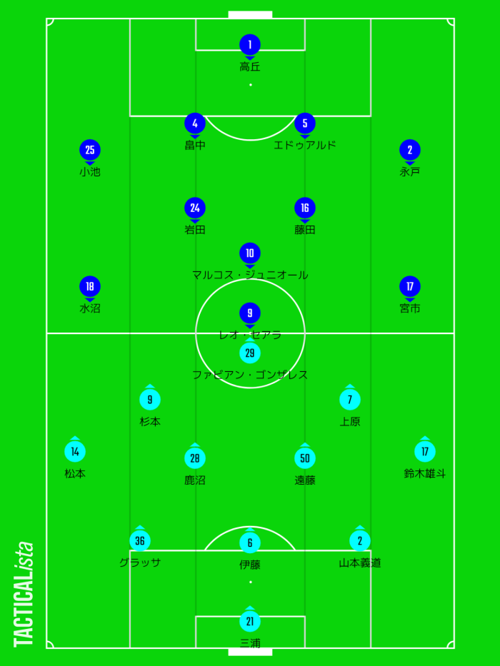 マリノス絡みで言うと大津はおそらくベンチスタート、高野は負傷離脱中。