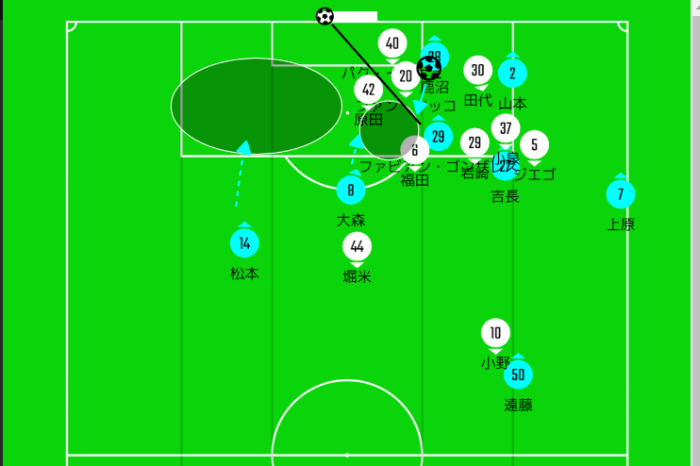 この試合の磐田はポジショナルプレーがうまく出来ている時間帯が多かったです。