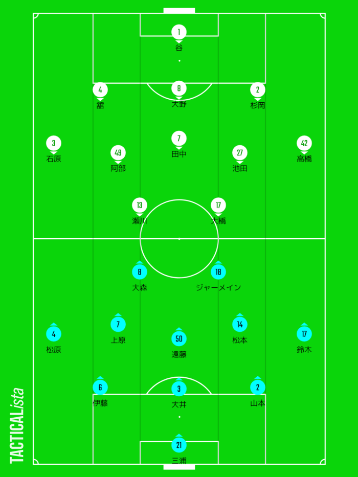 しかし一番の肝は攻撃の起点となる田中を抑えるために、ヤットさんをマンマーク気味で付かせるのが良いのではないかと思う。