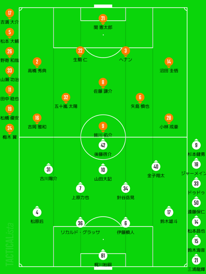 前節交代出場して良かった松原・後藤・金子をスタメンに推したい。