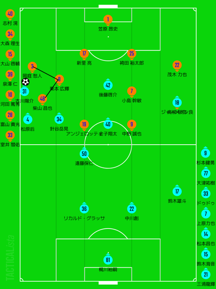 失点シーンも運悪く体の下を抜かれてしまいましたが反応してましたし、アンジェロッティの振り向きざまボレーをキャッチ、中野との1対1もコース消してパーフェクトセーブ。