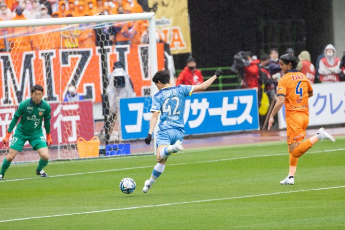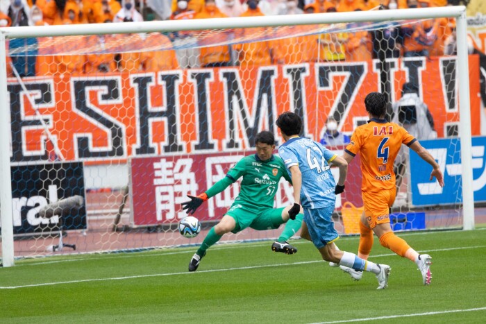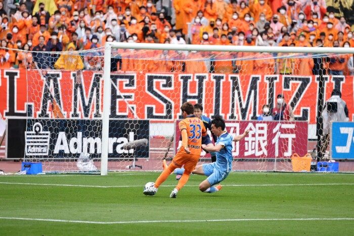 ジャメのスピードを活かした突破は清水DFも簡単には止められません。