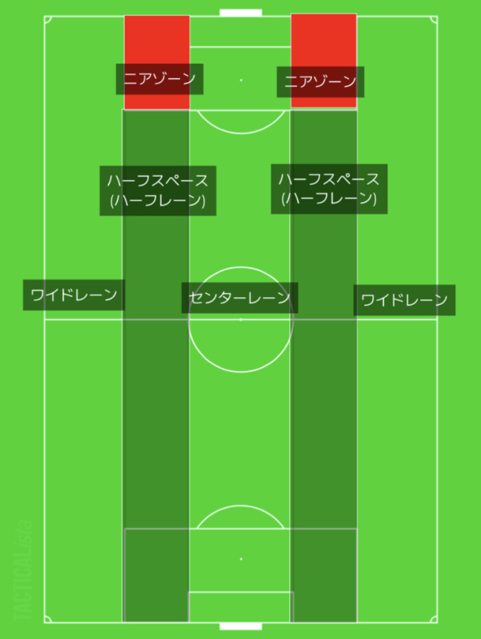 ニアゾーンとはハーフスペースでも相手ゴール横のゾーンのことを指します。
