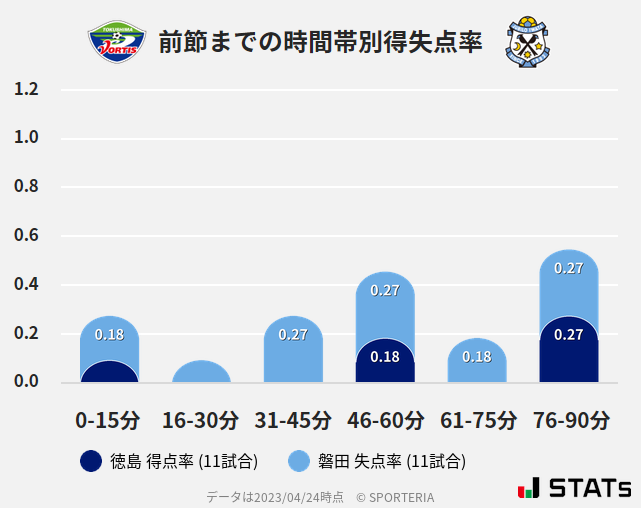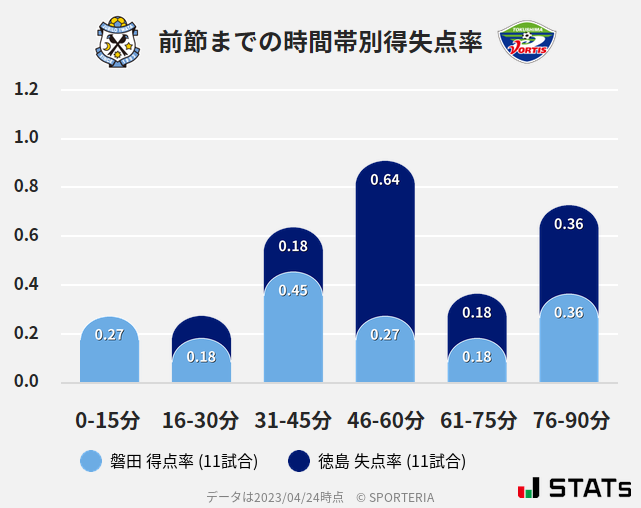 >徳島の後半立ち上がりの失点率が高いので、そこで得点したいところ。