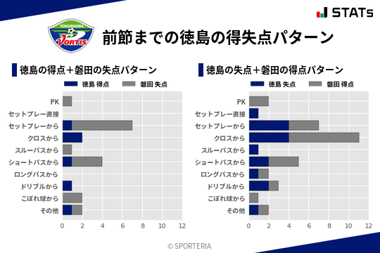 徳島はセットプレーとクロスから失点がやや多いので、磐田は得意の形で得点を奪いたい。