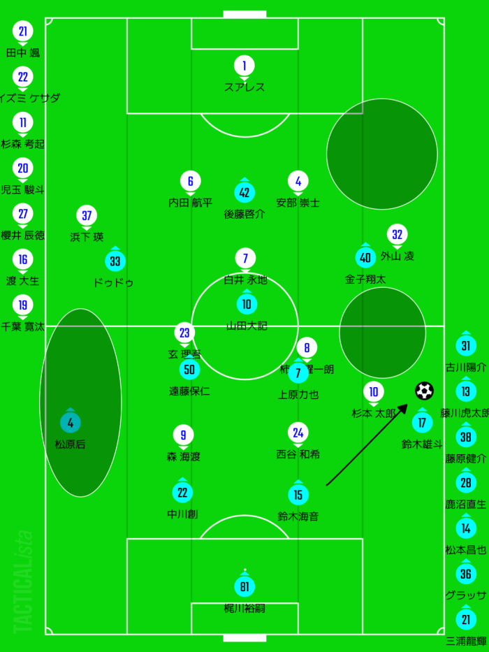 鈴木海音・中川創のカバーリングや守備のスライドも重要になりそう。