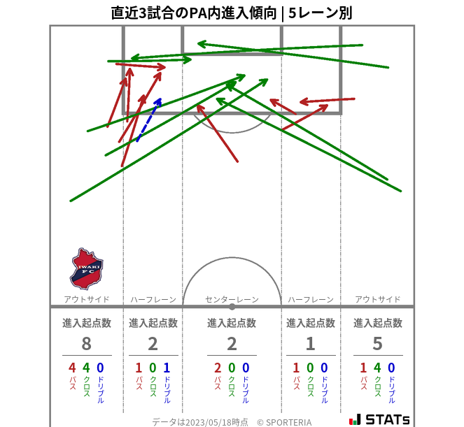 いわきの得点はセットプレーからがやや多いですね。