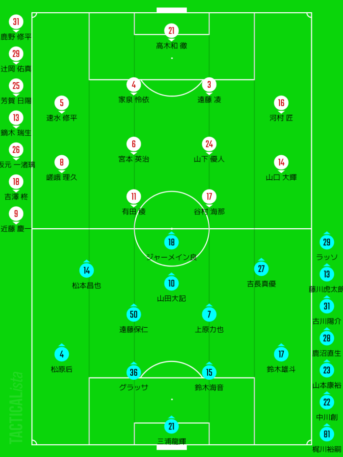松本が左サイドハーフ、右に吉長を予想。