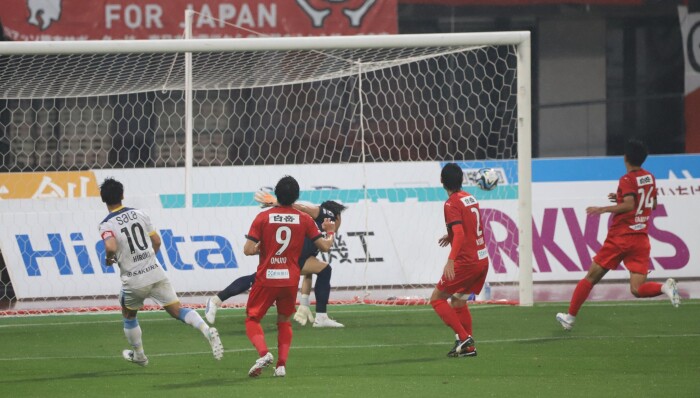 ・右からのクロスを最後はボレーで2点を取った熊本戦