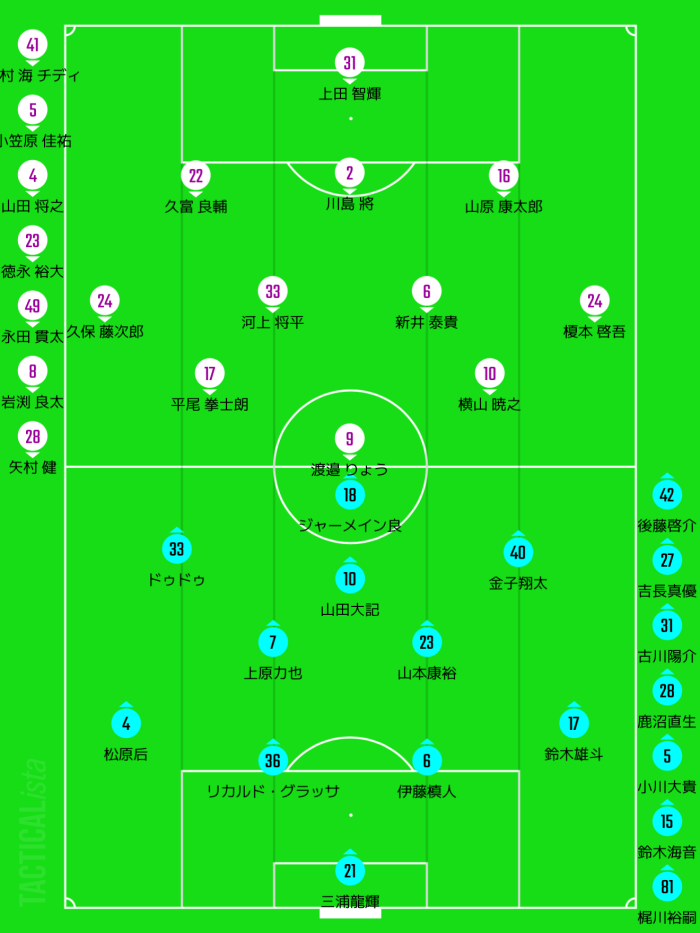 久保・榎本の個の突破力と中央で違いを作れる横山がおり、攻撃のバランスは良い。