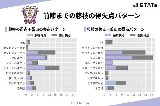 藤枝の得点はクロス・ショートパスからが多いですね。