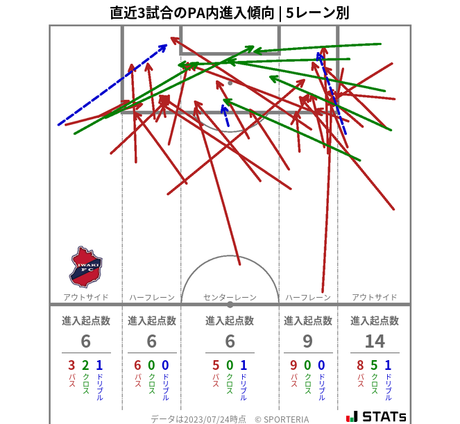 サイドを起点にハーフスペースへ侵入してくる攻撃が多いデータが。