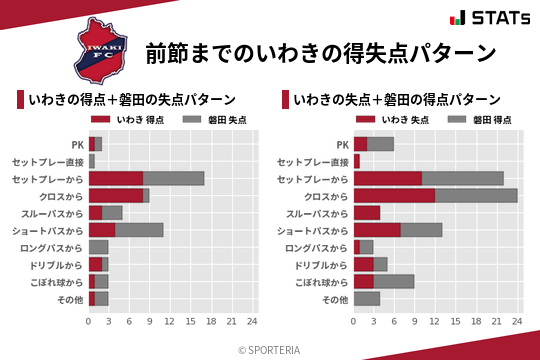 いわきFCの得点パターンはセットプレーとクロスからがほとんどです。