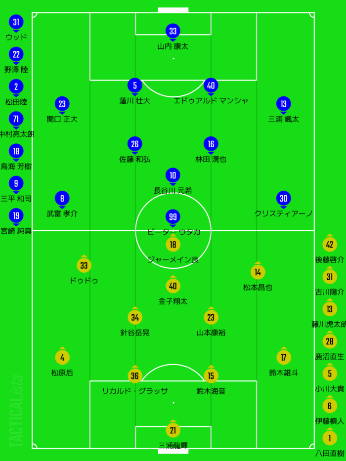 ウタカが守備をあまりしないようなので、ビルドアップからしっかり繋いで崩していきたいところ。