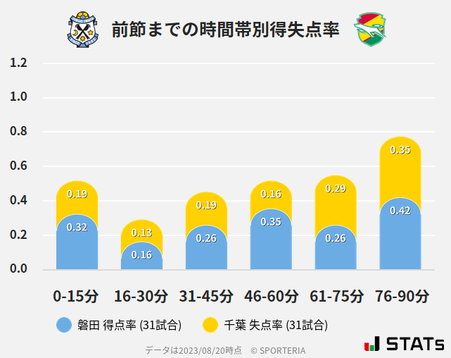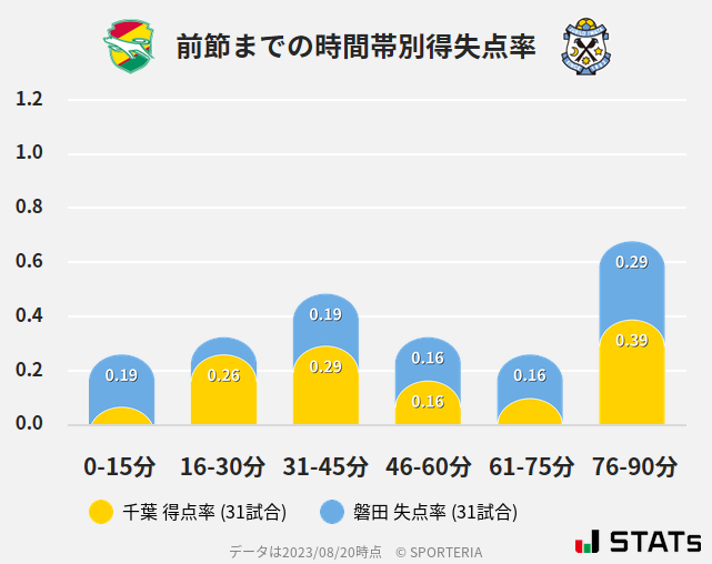 千葉の得点は前後半残り15分が高いデータになっています。