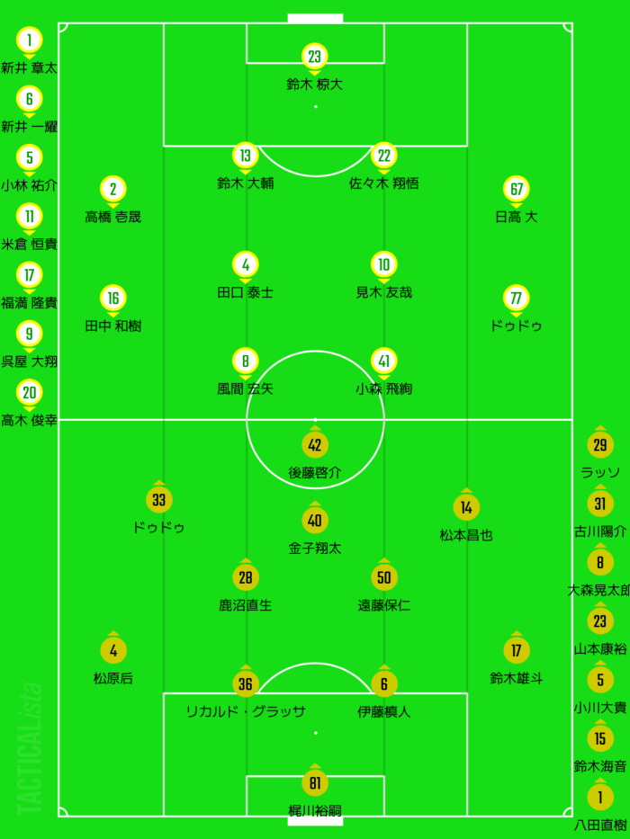 前節のメンバーをベースに、出場停止のジャメに代わり後藤啓介をスタメン予想。