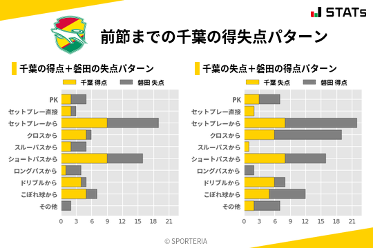 千葉は得点・失点ともにセットプレーとショートパスからが多いデータになっています。