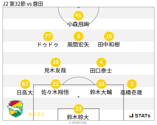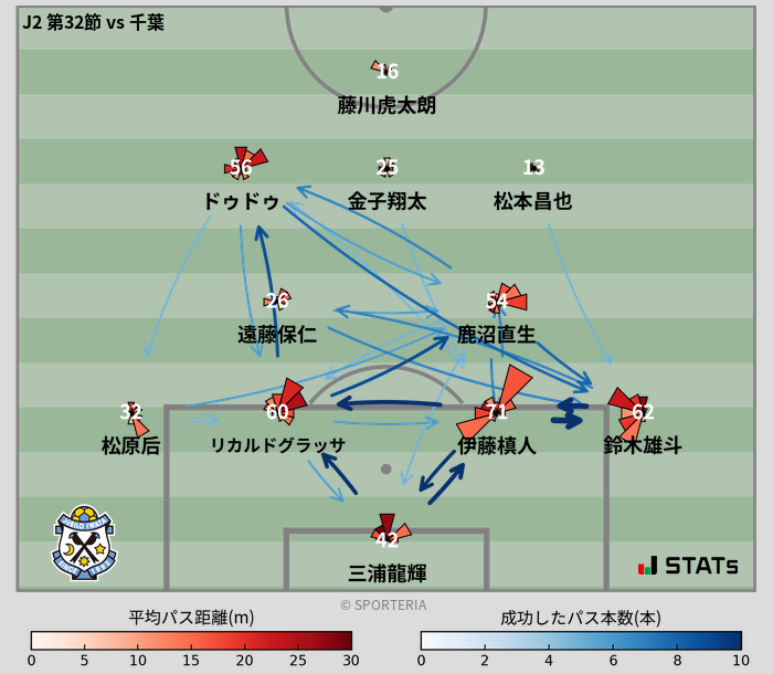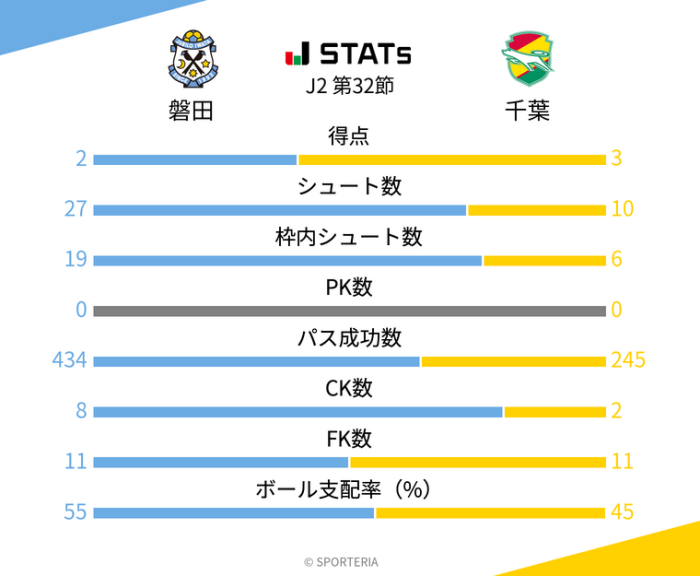 いきなり先制された事で最初から攻撃的な戦いをした磐田がスタッツでは上回る結果に。