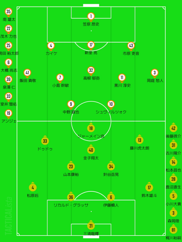 前節と同じメンバーをベースに、FWは室井に代えて中野誠也をスタメン予想。
