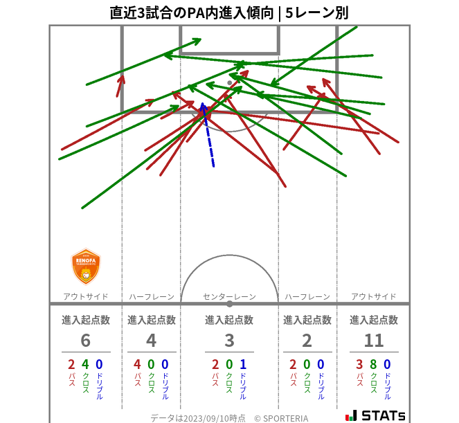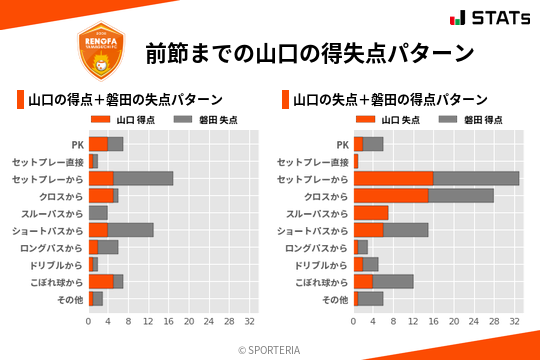 山口の得点自体はさほど多くありませんが、磐田の失点パターンと合わせるとセットプレー・ショートパスからの攻撃に気をつけたい。