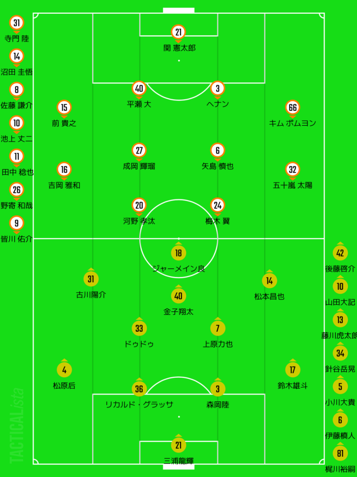 前節出場停止だった上原力也とドゥドゥをボランチに予想。