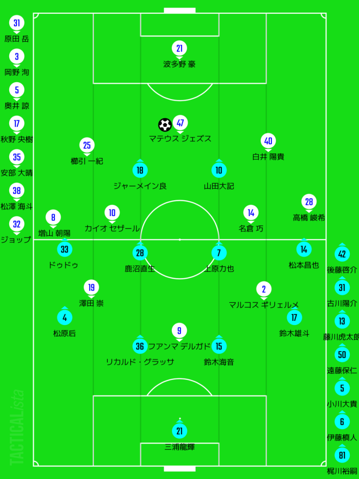 マテウスが最終ラインまで下がり、サイドバックは高い位置取りをする、