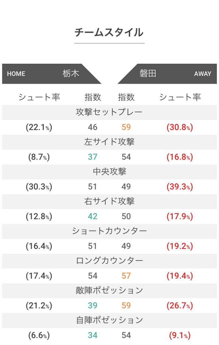 特に終盤は高い得点率ですので、栃木の固い守備に苦しんでも最後まで諦めず、冷静にゴールを狙っていけばこじ開けられるはず。