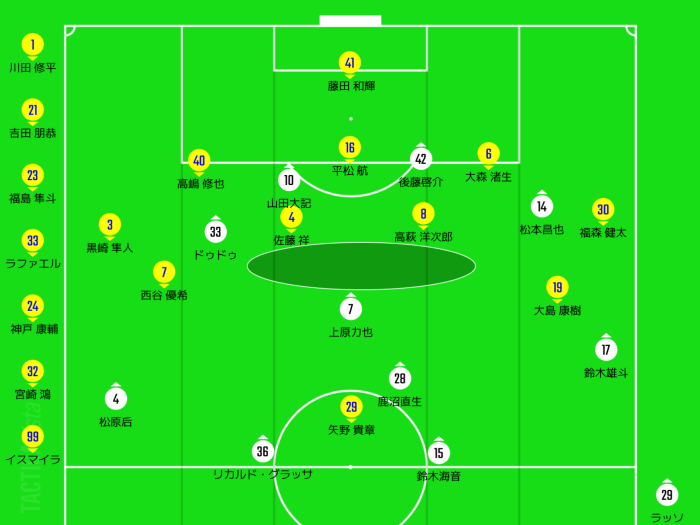裏のスペースやニアゾーンを攻略しつつも、絶好調の上原やドゥドゥのミドルシュートも効果的。