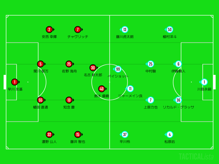 磐田はペイショット・藤川が良いパフォーマンスをガンバ戦で見せていたので彼らをスタメン予想。