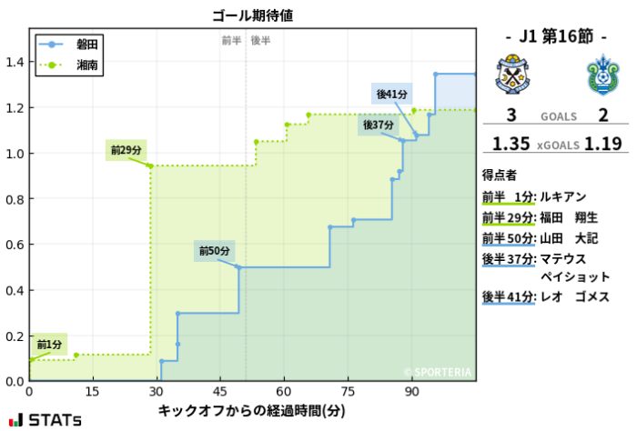 磐田は難しいシュートを決めたこともあり、そこまで期待値は高くなりませんでした。