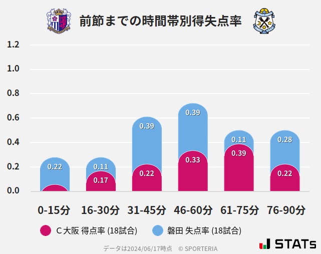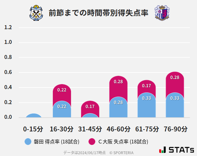 ジュビロの得点は16-30分と後半に多く生まれそう。