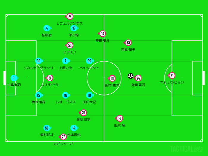 最終ラインも高く押し上げるので、ジャメが出ている時は積極的に裏のスペースを突きたい。