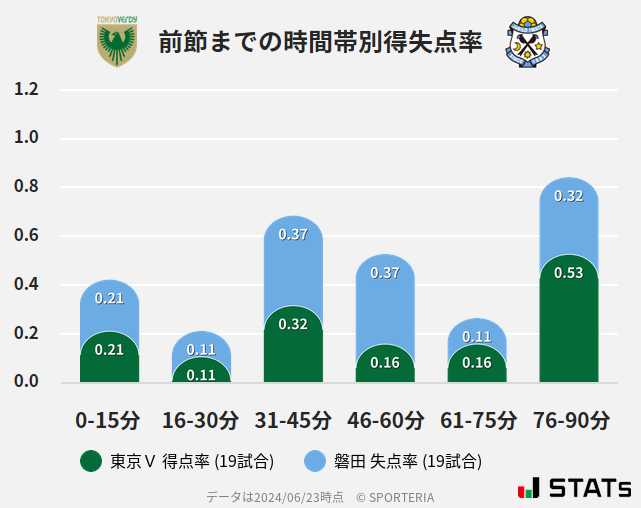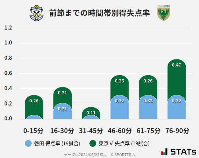 ヴェルディの得点は31-60分と76分以降に生まれそうです。