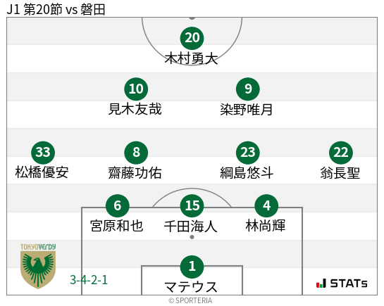 この試合、4-4-2で守るジュビロと3-4-2-1で攻めるヴェルディ。