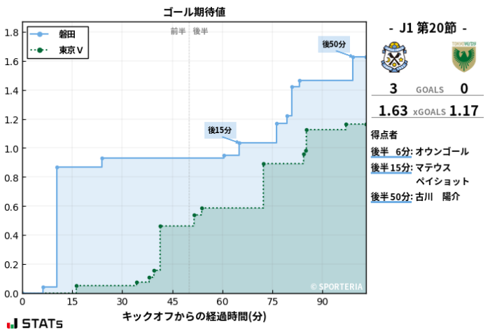 PK失敗がありながら1.63の期待値で3得点したジュビロの決定力の高さは素晴らしかったですね。
