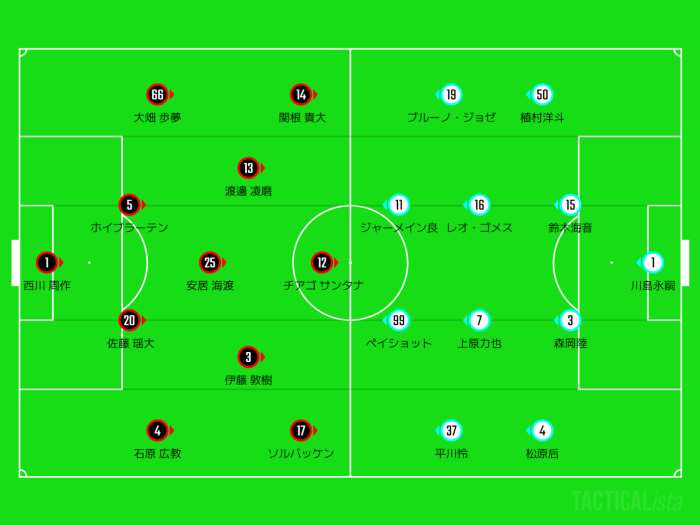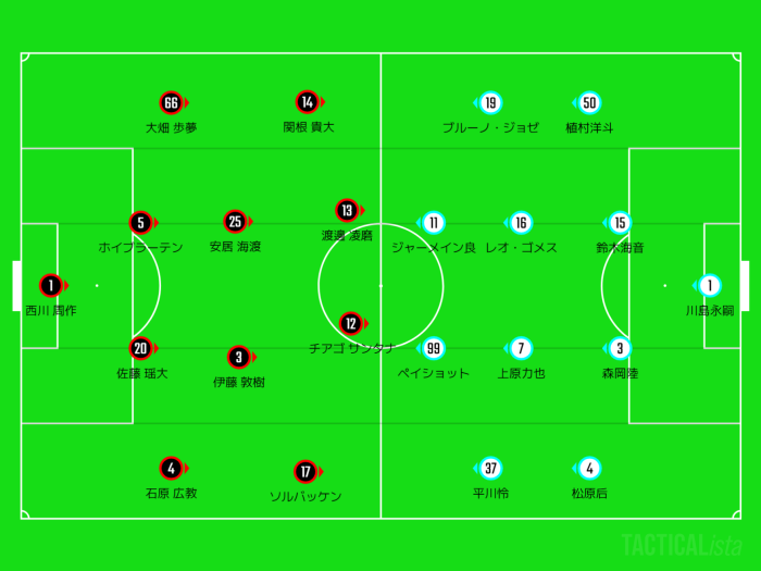 水曜日の試合から中3日、左WGに関根、CFはサンタナを予想。