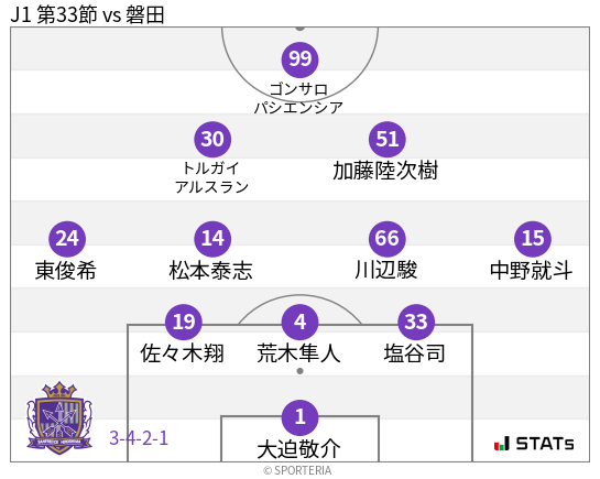 79分広島は塩谷に代えて満田をシャドーに、松本を再びボランチへ。