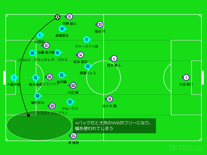 「守備時には5バックにはなりますけど、上手くその幅を埋める、相手にスペースを与えないために少し形を変えてやりました。