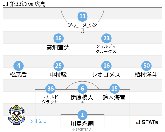 「広島相手にアウェイで前回対戦したときもそうですが、どうしても幅を使われて相手に時間を与える、スペースを与えるというところが広島は本当に上手いので、どうスペースを消していくかというところで3バックで臨みました。」