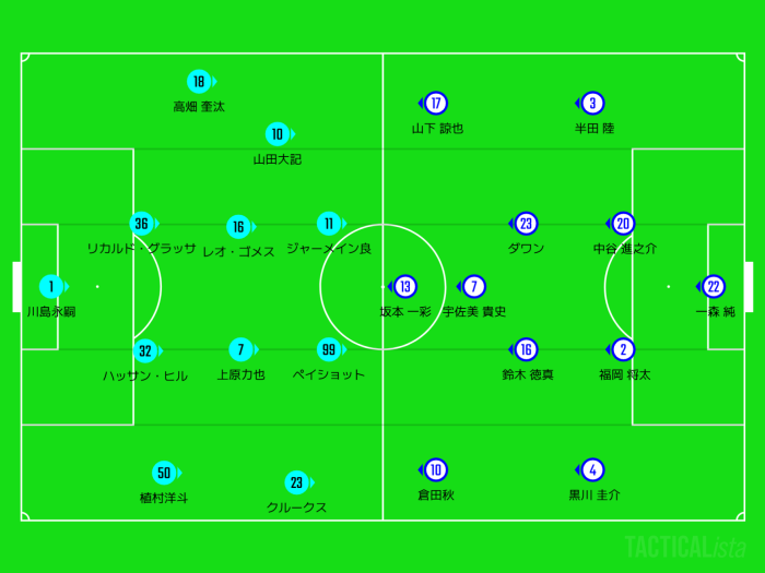 伊藤槙人・松原后に代えてペイショット・高畑を投入。