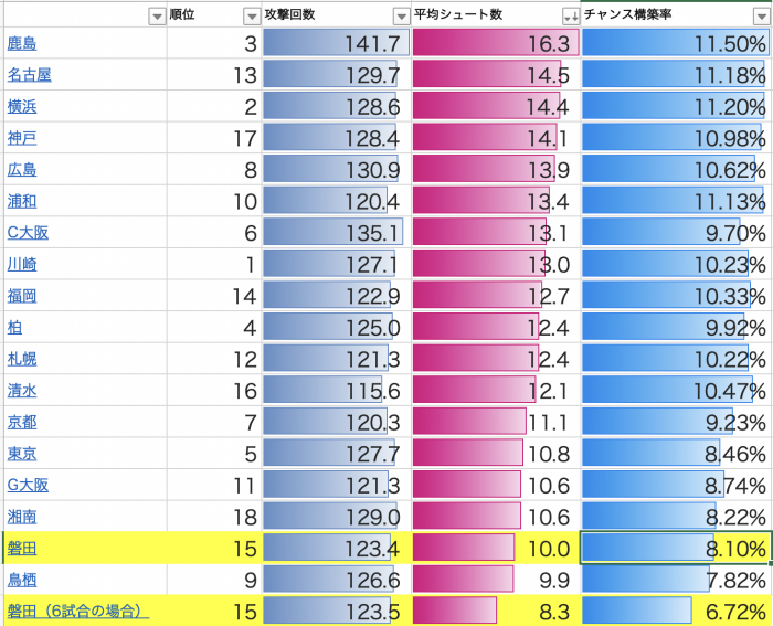 試合数が多くてちょっとレビューが追いつかないので、ここまでのジュビロの攻撃をデータで振り返ってみました。