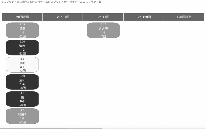またジュビロは走力の問題も抱えており、ここまですべての試合で、スプリント数で相手に負けています。